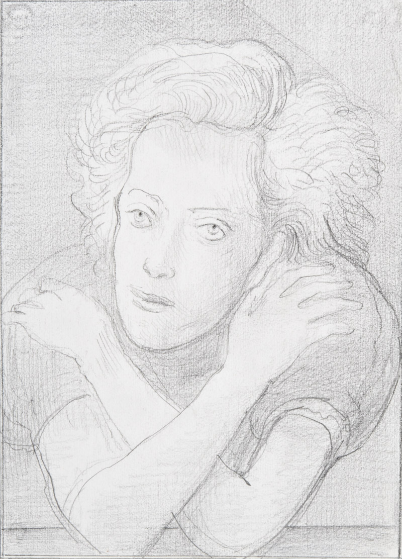 Eugene Berman (San Pietroburgo 1899 ‑ Roma 1972) “Donna appoggiata sui gomiti” matita su carta (cm 22,4x16)