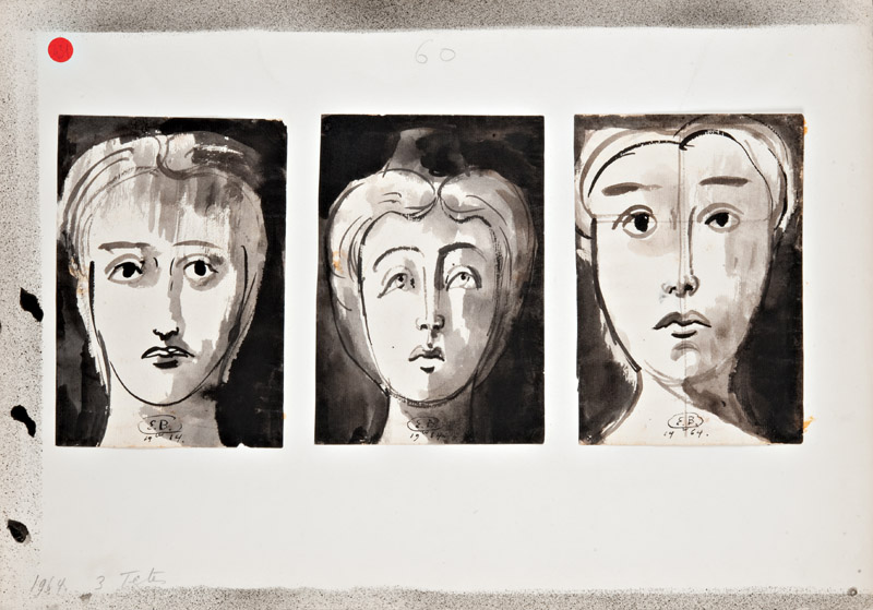 Eugene Berman (San Pietroburgo 1899 ‑ Roma 1972) “Tre volti” 1964 tecnica mista su carta (tre opere) (cm 19x13cad) Siglato e datato 1964 in basso al centro