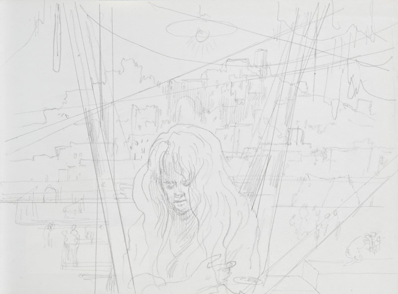 Eugene Berman (San Pietroburgo 1899 ‑ Roma 1972) “Donna e città” matita su carta (cm 23,5x32) Siglato in basso al centro
