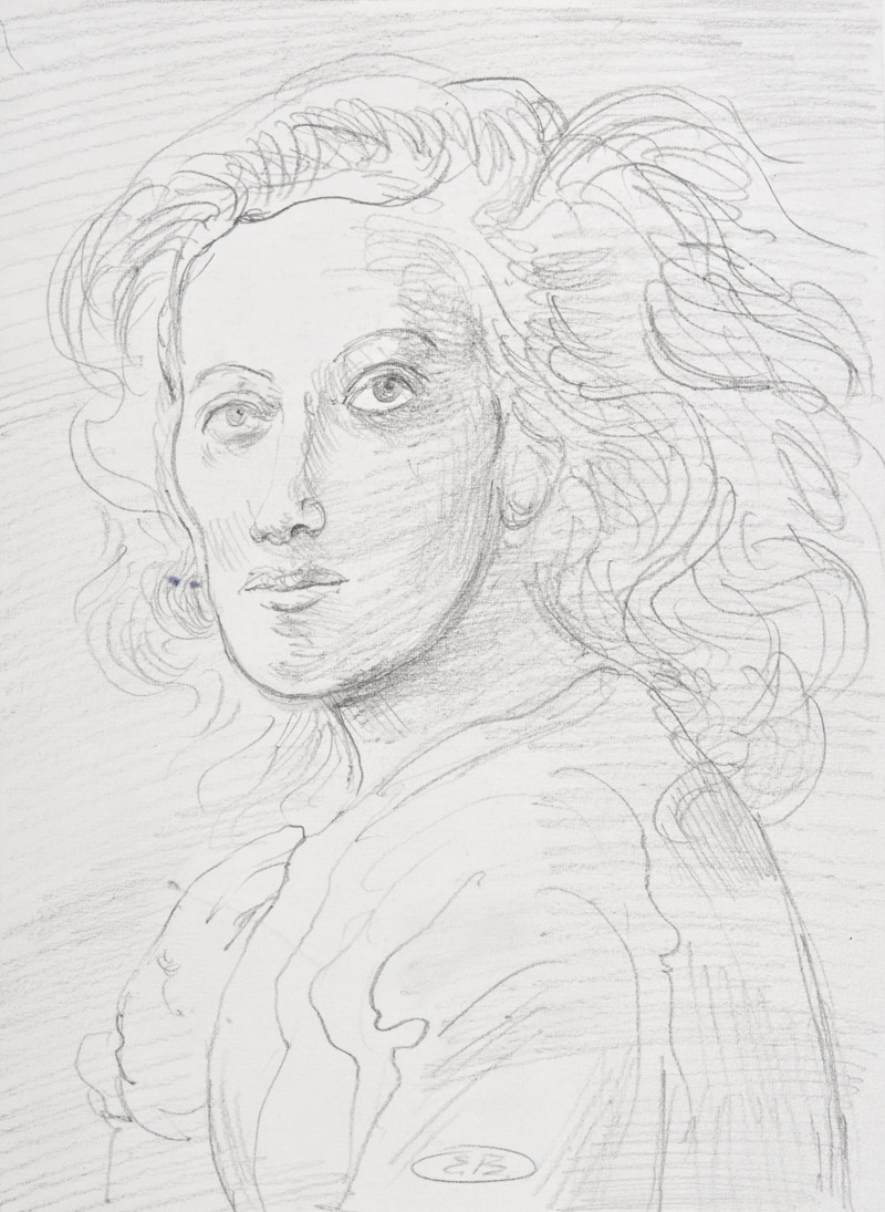 Eugene Berman (San Pietroburgo 1899 ‑ Roma 1972) “Ritratto di donna” matita su carta (cm 23x17) Siglato in basso al centro
