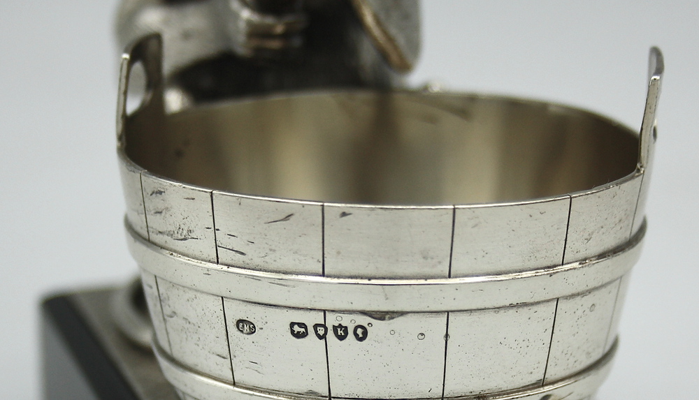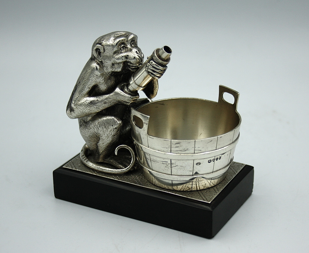 A foggia di scimmia con secchio e con base in legno ebanizzata.