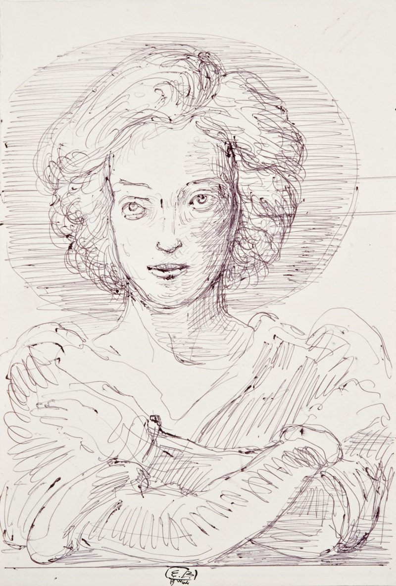 Eugene Berman (San Pietroburgo 1899 ‑ Roma 1972) “Donna con braccia conserte” 1964 inchiostro su carta (cm 27,4x18,7) Siglato e datato 1964 in basso al centro