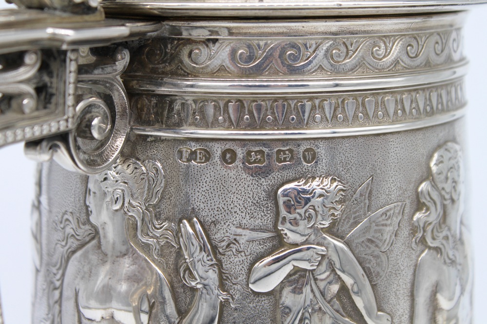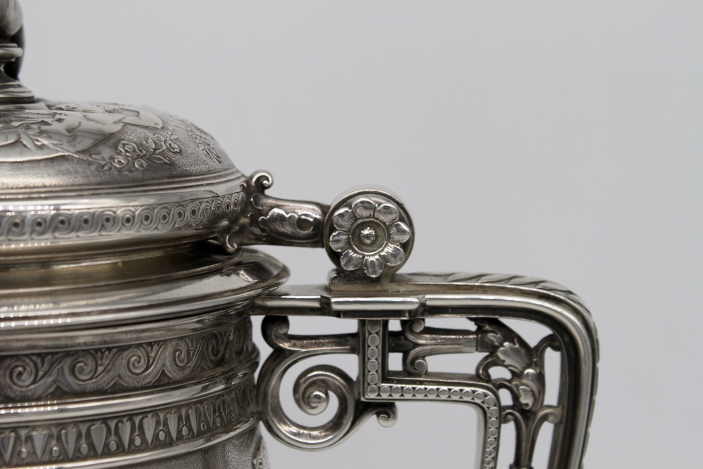 Sul coperchio un piccolo cupido sta sistemando il suo arco. Nella parte superiore del corpo, troviamo decori astratti e un'alternanza di divinità che incarnano le quattro stagioni ,nella inferiore decorazioni vegetali