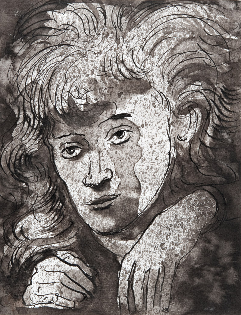 Eugene Berman (San Pietroburgo 1899 ‑ Roma 1972) “Ritratto di donna” tecnica mista su carta (cm 21,7x16,6)