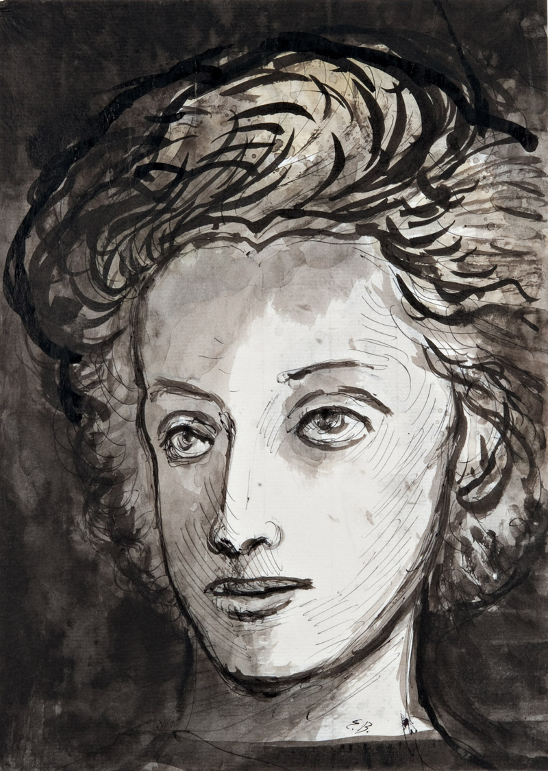 Eugene Berman (San Pietroburgo 1899 ‑ Roma 1972) “Ritratto di donna” tecnica mista su carta (cm 29,7x21) Siglato in basso a destra