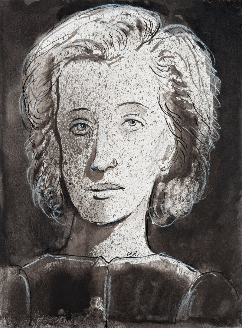 Eugene Berman (San Pietroburgo 1899 ‑ Roma 1972) “Ritratto di donna” tecnica mista su carta (cm 31,9x23,9)