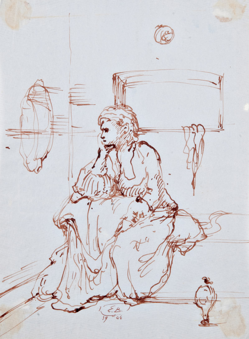 Eugene Berman (San Pietroburgo 1899 ‑ Roma 1972) “Dama” 1946 china su carta (cm 28,8x15,3) Siglata e datata 1946 in basso al centro