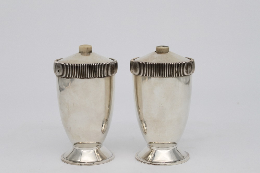 Coppia di spargi zucchero in argento - A pair of silver casters with ivory mounts.