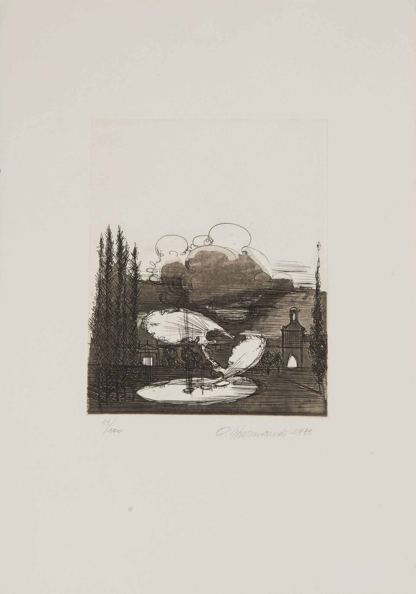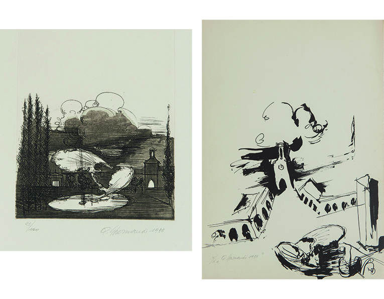 QUINTO GHERMANDI (Crevalcore 1916 – San Lazzaro di Savena 1994). Lotto composto da due acqueforti. Cm 50X35 cad. Firmate e datate Q. Ghermandi 1983, numeri di tiratura IV/XX e 23/100.