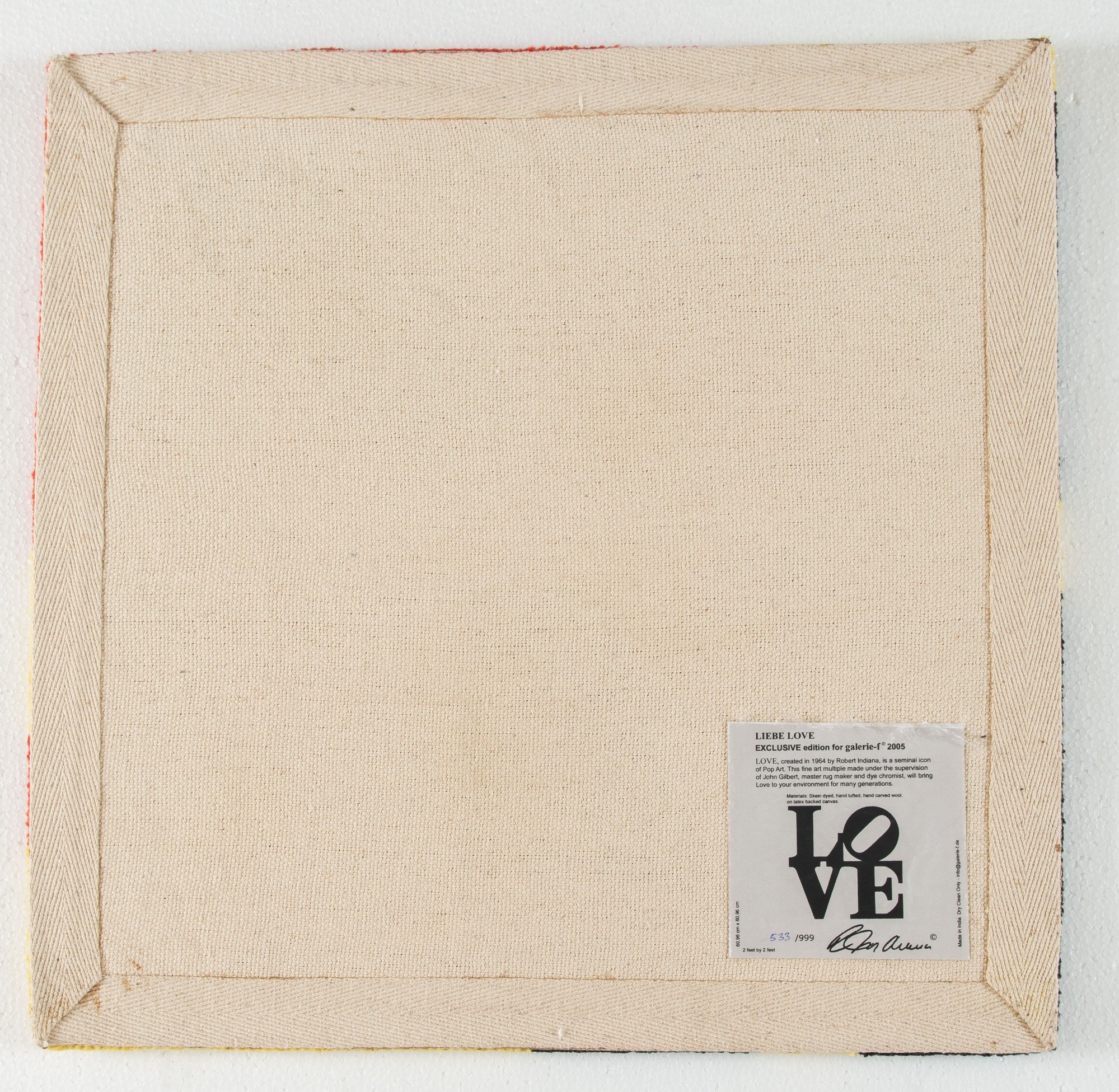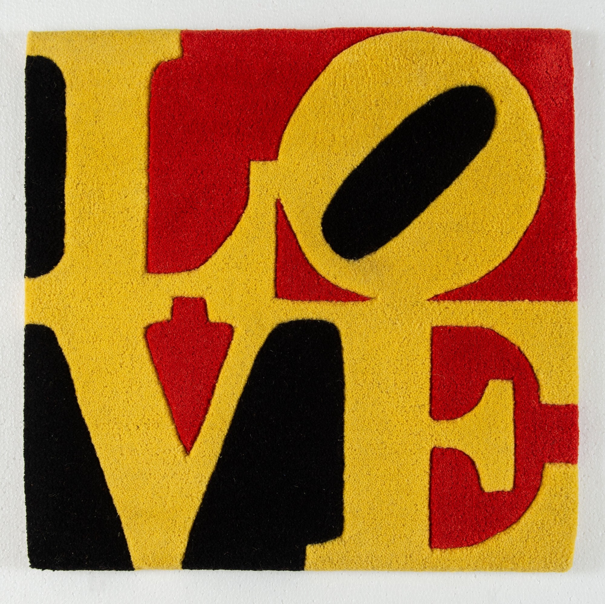ROBERT INDIANA (New Castle 1928 - Vinalhaven 2018). "Liebe Love". Arazzo tappeto. Cm 60,9x60,9. Numeri di tiratura al retro 533/999. Al retro reca etichetta firmata dall'artista.