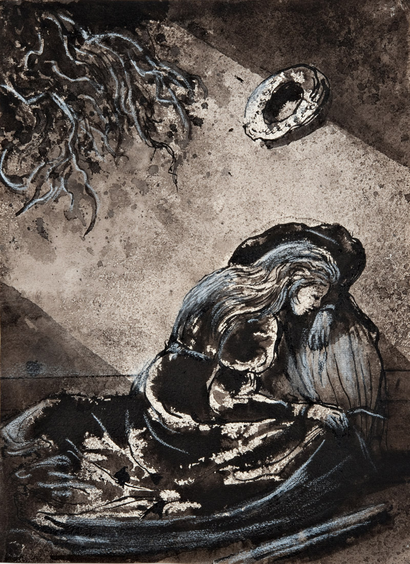 Eugene Berman (San Pietroburgo 1899 ‑ Roma 1972) “Donna che piange” tecnica mista su carta (cm 32x23,6)