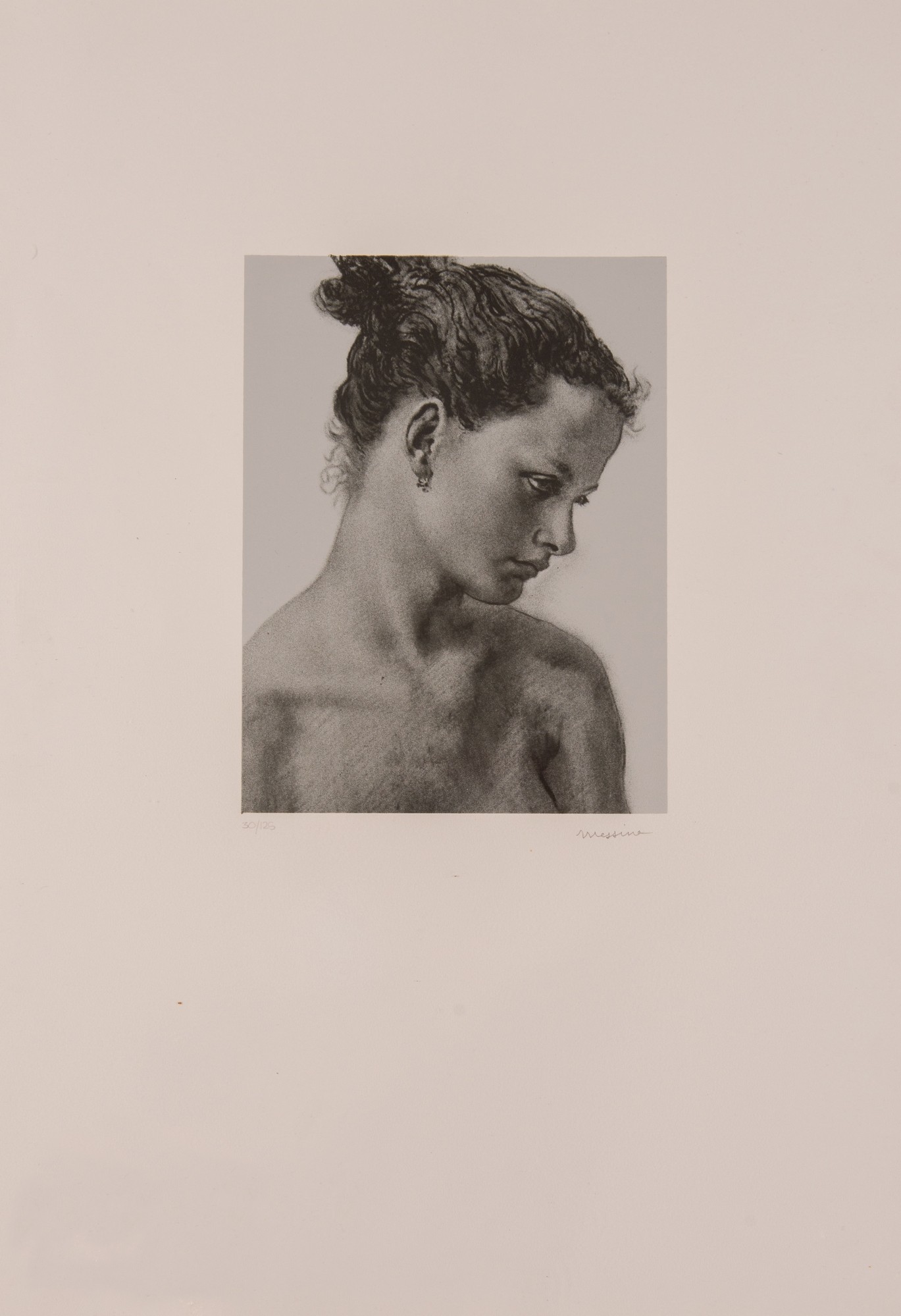 FRANCESCO MESSINA (Linguaglossa 1900 – Milano 1995). “Volto di donna”. Litografia a colori su carta. Foglio: cm 70x50. Opera firmata in basso a destra Messina e con numeri di tiratura in basso a sinistra 30/125.