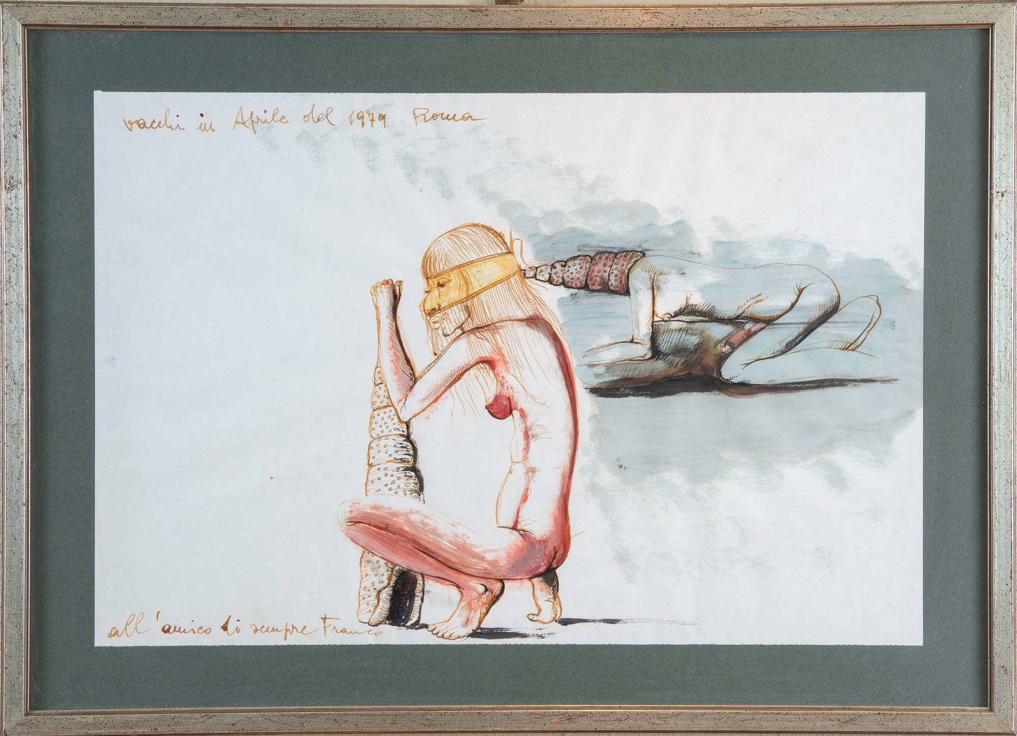 SERGIO VACCHI (Castenaso 1925 - Siena 2016). "Vacchi in aprile del 1979, Roma", 1979. Tecnica mista su carta. Cm 39,5x59. Opera firmata in alto a sinistra "Vacchi".
