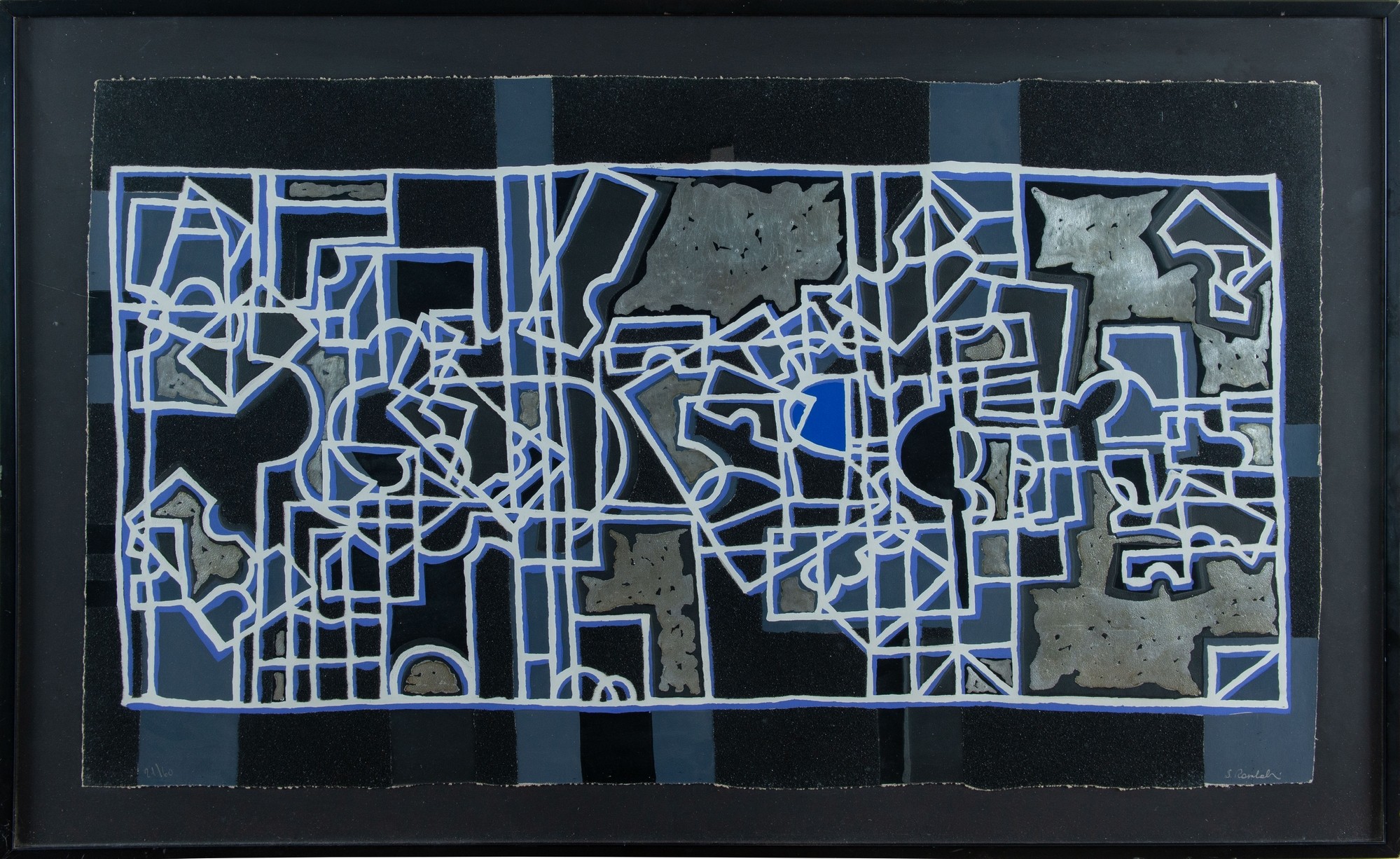 STEFANO RAMBALDI (Bologna 1945). "Composizione". Litografia a colori su carta. Cm 59x99. Opera firmata in basso a destra S. Rambaldi e con numeri di tiratura 21/60.