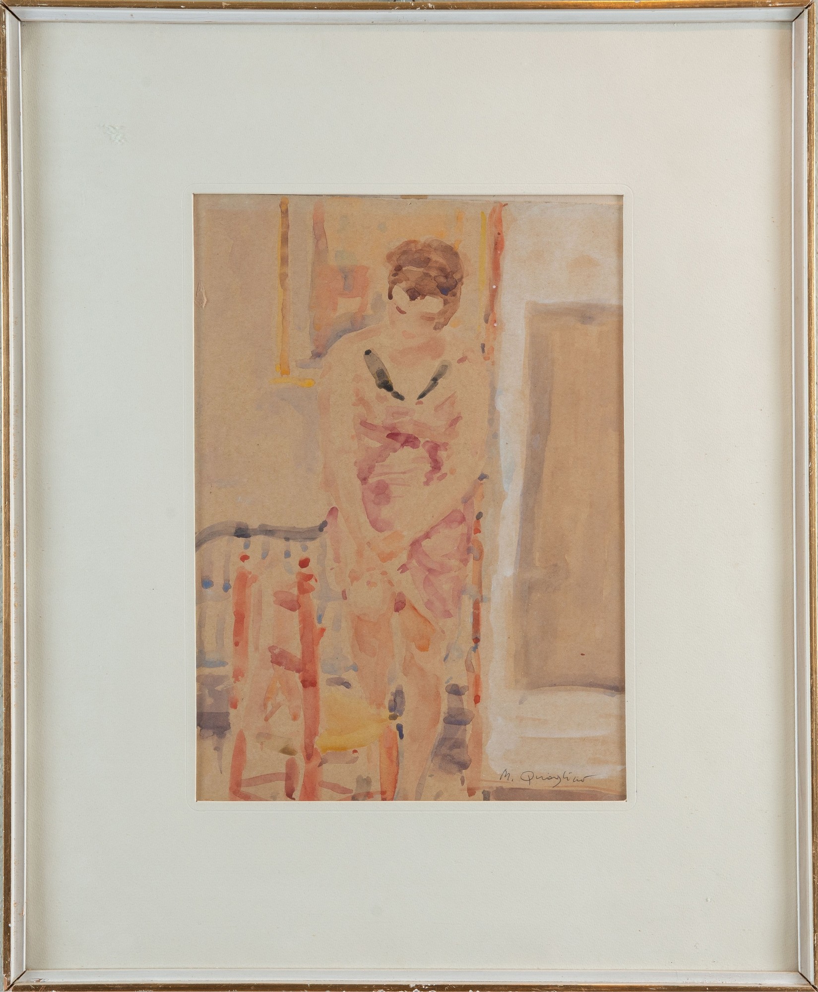 MASSIMO QUAGLINO (Refrancore 1899 - Torino 1982). "Ritratto di donna". Tecnica mista su carta. Cm 33x23. Opera firmata in basso a destra M. Quaglino.