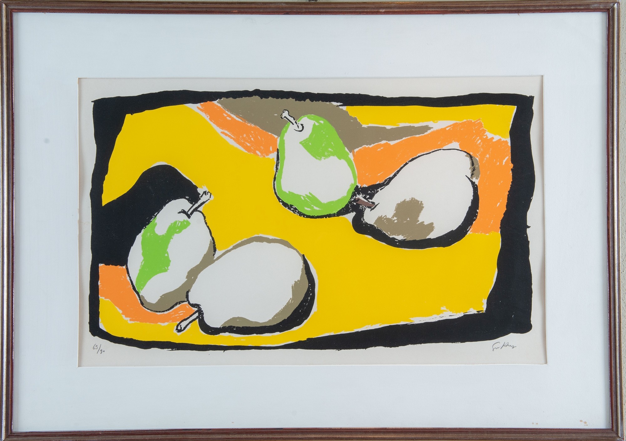 RENATO GUTTUSO (Bagheria 1911 - Roma 1987). "Le pere". Litografia a colori su carta. Cm 50x72. Opera firmata in basso a destra Guttuso e con umeri di tiratura in basso a sinistra 63/90.