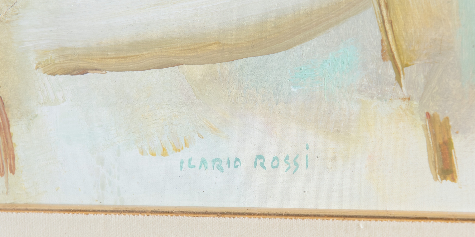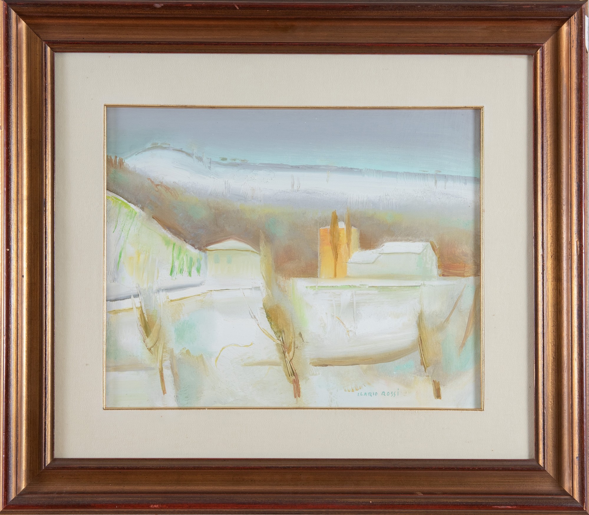 ILARIO ROSSI (Bologna 1911 - Bologna 1994). “San Luca”, prima metà anni ’70. Olio su tela. H. Cm 40x50. Opera firmata in basso a destra “Ilario Rossi”. Al retro reca timbro a secco “L’Artistica Belle arti Bologna”. Opera accompagnata da autentica su fotografia del maestro datata “20/5/1972”. (Difetti)