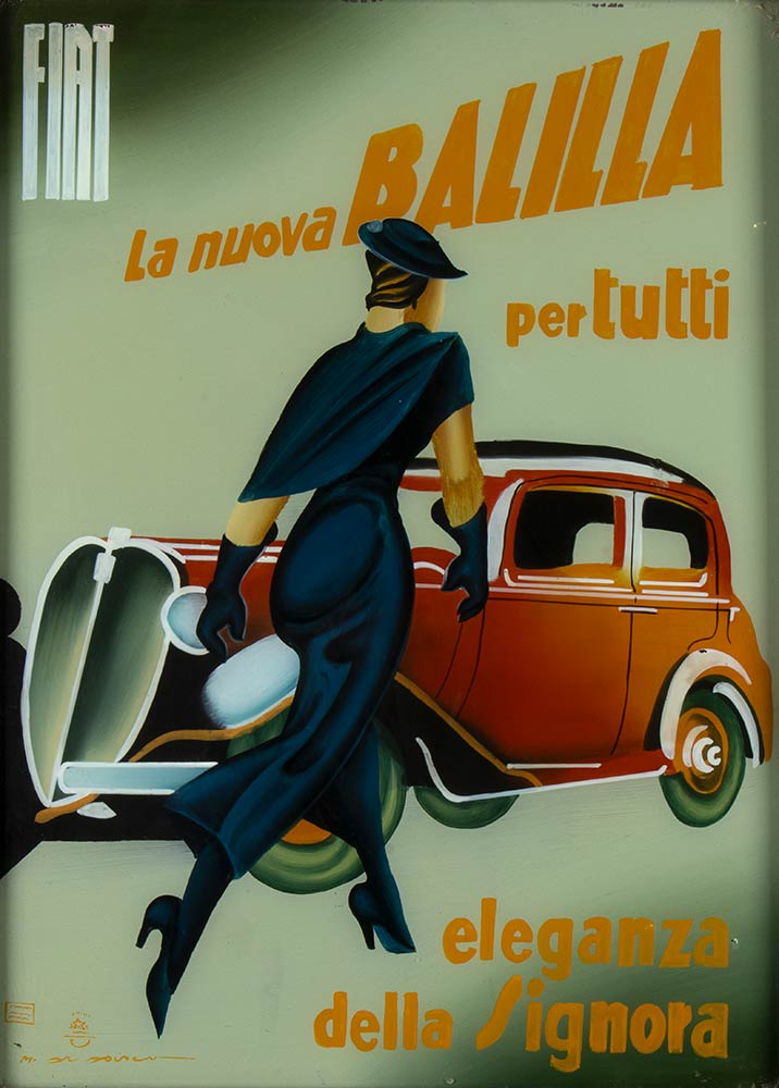 FIAT advertising plaque painted under glazed from a Marcello Dudovich draw