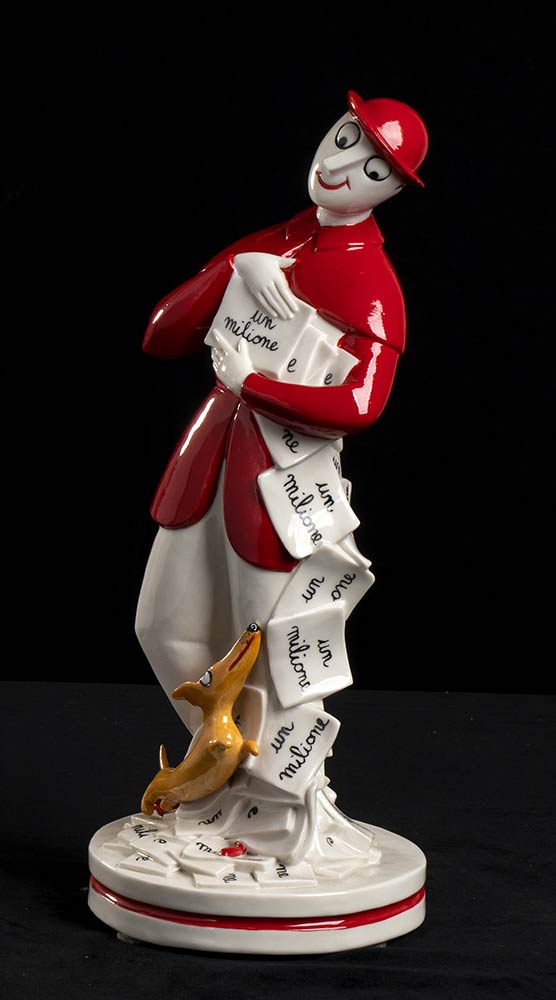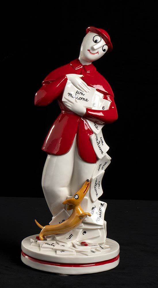 Ceramic decorated in polychromy. Manufacturing brand with the red inscriptio “L.Fabris n.189”. Sculpture committed by Sergio Tofano, inventor of the famous “corriere dei piccoli” comic.