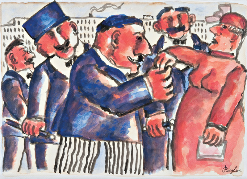 Franz Borghese (Roma 1941 ‑ 2005) “Personaggi” tecnica mista su carta intelata (cm 25,5x35) Firmato in basso a destra L’opera è accompagnata da autentica su fotografia rilasciata dall’ artsista