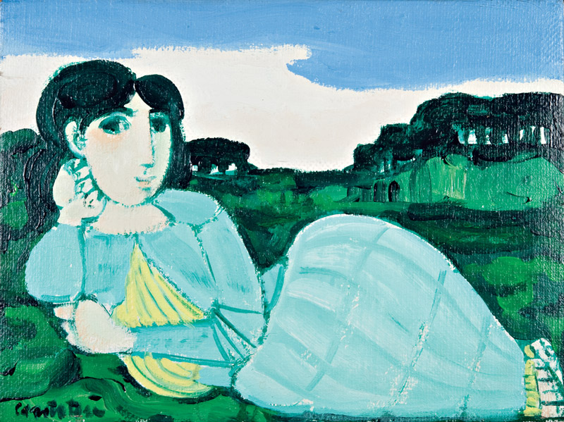 Domenico Cantatore (Ruvo Di Puglia 1906 ‑ Parigi 1998) “Odalisca” acrilico su tela (cm 30x40) Firmato in basso a sinistra L’opera è accompagnata da certificato di autenticità su fotografia rilasciato dall’artista in data marzo 1998 L’ opera è registrata presso l’Archivio Generale di Domenico Cantatore ‑ Milano ‑ a cura della Galleria Il Mappamondo ‑ con il n. 474 Provenienza: Galleria d’Arte Il Vertice ‑ Roma