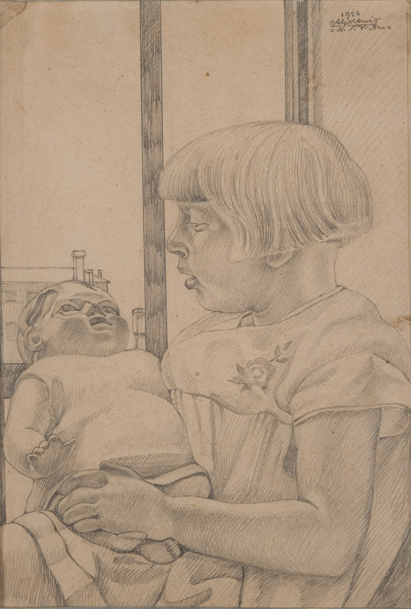Cagnaccio di San Pietro (Desenzano 1897 ‑ Venezia 1946) “Lilly con la bambola” 1928 matita su carta (cm 37x26) Firmato e datato 1928 in alto a destra Provenienza: Galleria del Levante ‑ Milano ‑ Roma ‑ Muenchen; Galleria Gianferrari ‑ Milano Bibliografia: M. Fagiolo dell’Arco “L’arte del gioco”, Roma 1988; “Cagnaccio di San Pietro” Galleria Gianferrari, Milano pag. 33 ill. n. 9, Edizioni Electa 1989