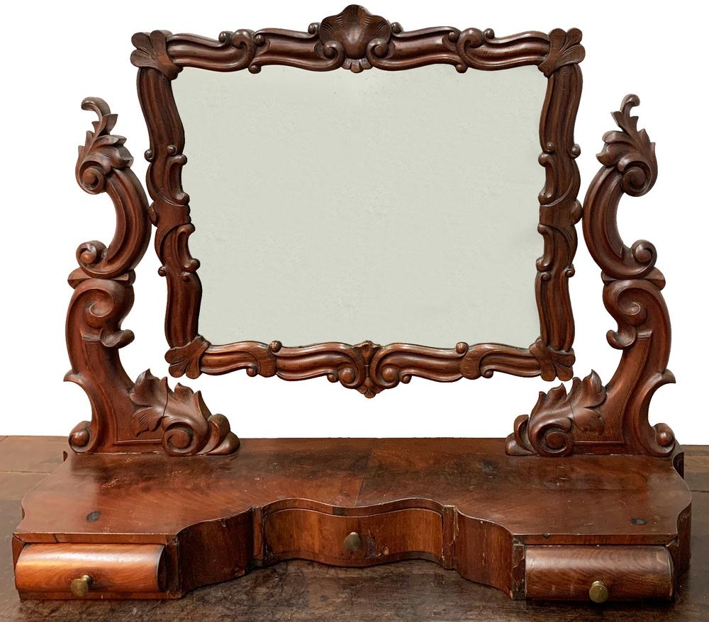 PSICHE DA APPOGGIO lastronata in mogano con tre cassetti cm 70x60x25 Lievi...