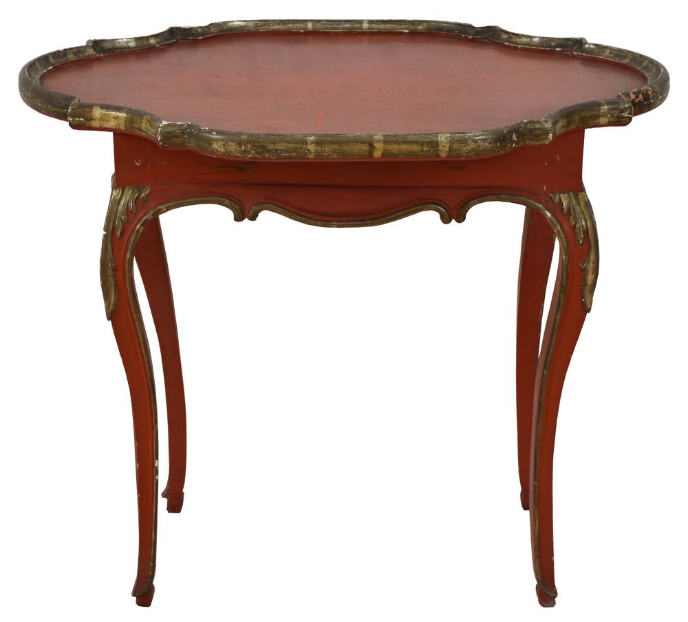 Tavolo da té laccato rosso e argento cm 73x88x64 XVIII secolo An early XVIII...