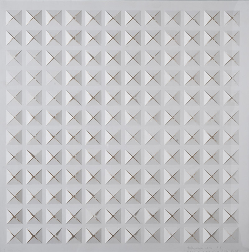 Dadamaino (Milano 1930 ‑ 2004) “Senza titolo” 1960/64 calcografia in rilievo (cm 50x50) Firmato e datato ‘60‑’64 in basso a destra, iscrizione: “A Nini con grandissimo affetto. Dada”, p.a.