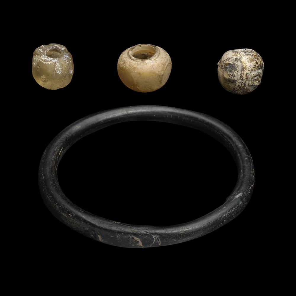 BRACCIALE E TRE VASETTI IN VETRO DATAZIONE: età romana MATERIA E TECNICA:...