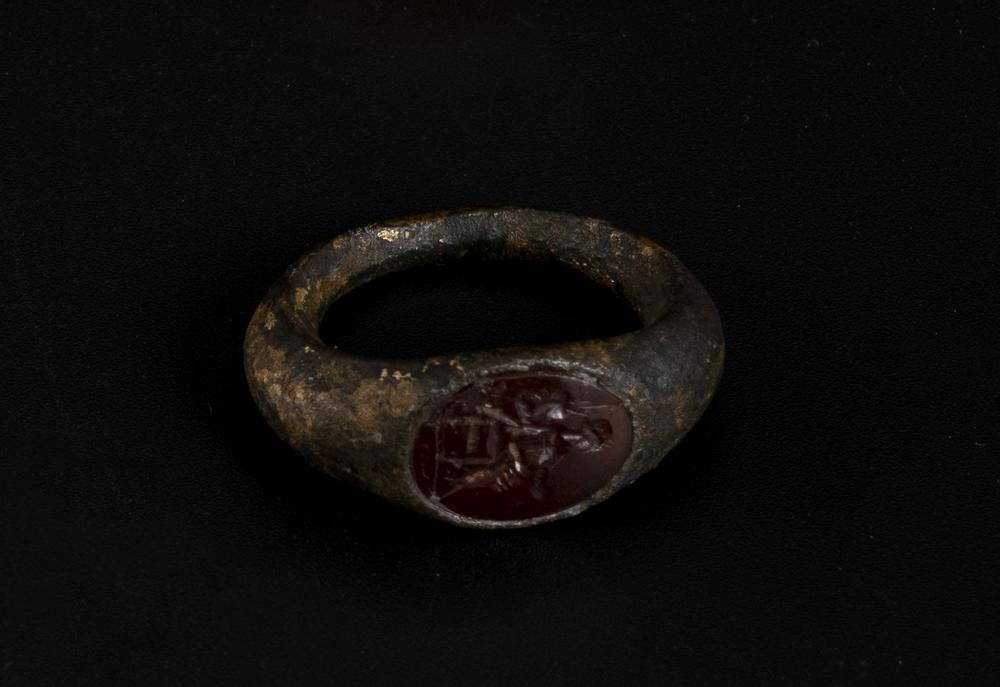 STATO DI CONSERVAZIONE: ossidato, corniola ricomposta da due frammenti