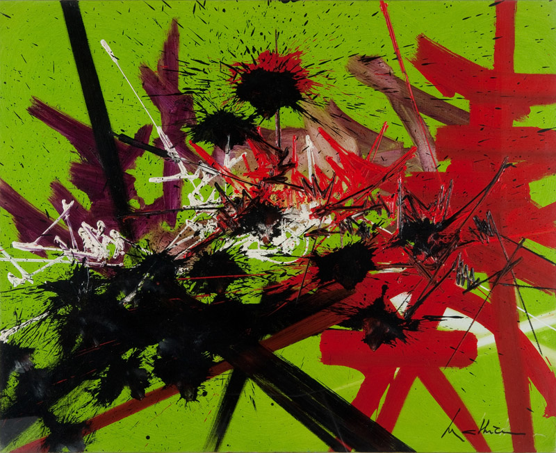 Georges Mathieu (Boulogne‑Sur‑Mer 1921 ‑ Boulogna‑Billancourt 2012) “Regards Reveurs” 1988 acrilico su tela (cm 81x100) Firmato in basso a destra; titolato al retro L’opera è accompagnata da certificato di autenticità su fotografia rilasciato dall’artista in data 6 maggio 1988