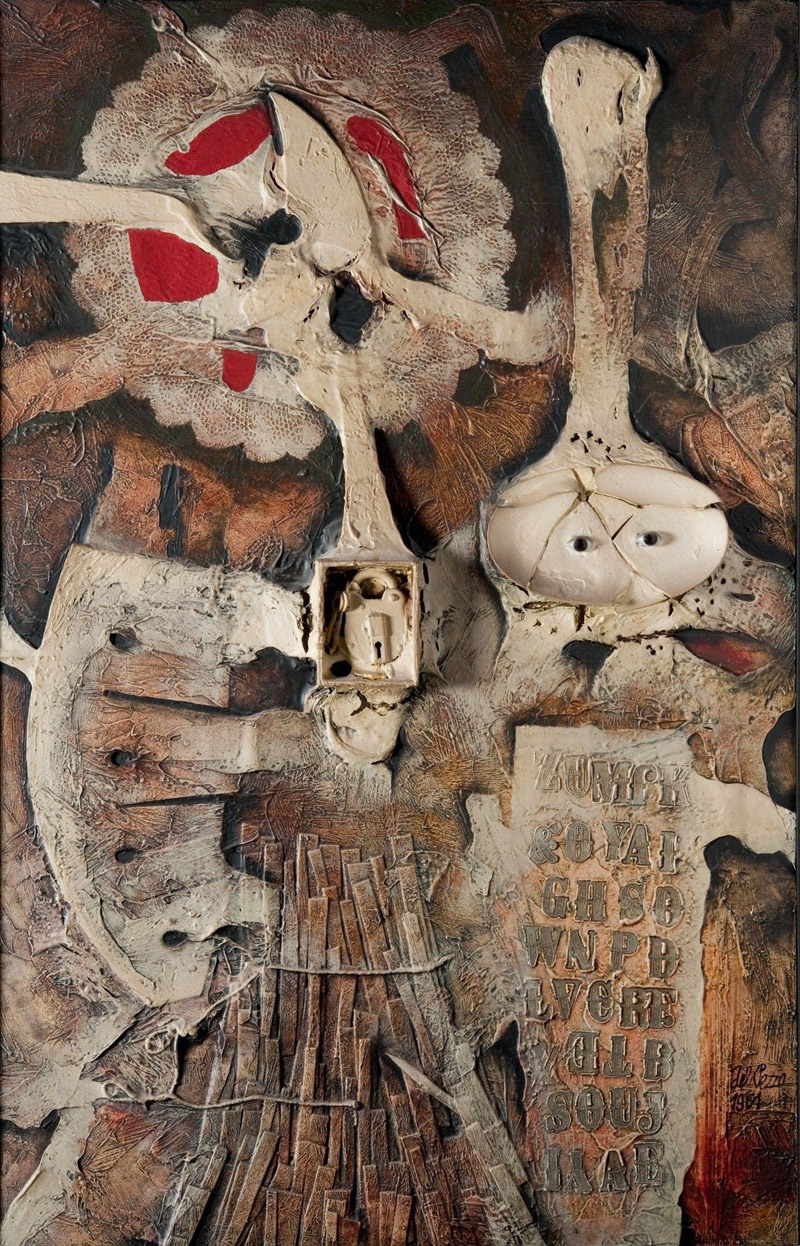 Lucio Del Pezzo (Napoli 1933) “Santa Lucia” 1961 olio , tecnica mista e collage su tavola (cm 128x82) Firmato e datato 1961 in basso a destra; firmato, datato 1961 e titolato al retro Provenienza: Galleria La Nuova Città ‑ Brescia