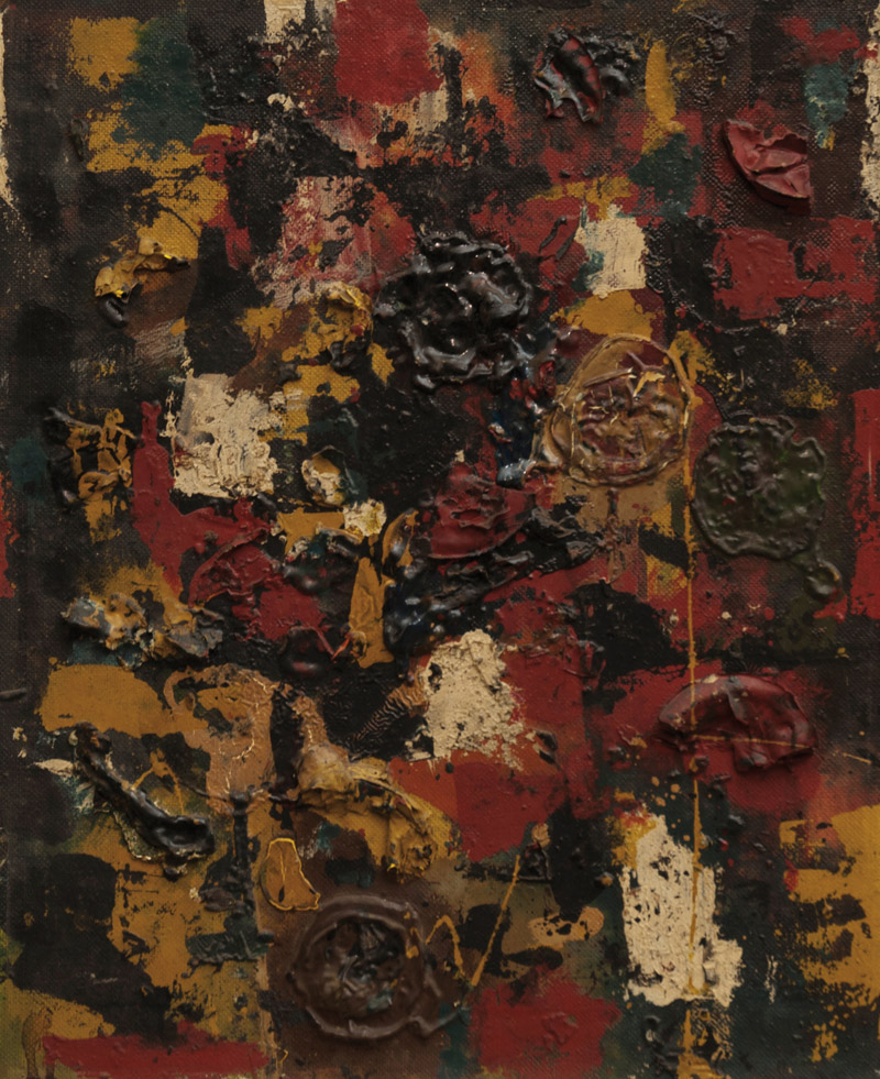 Ralph Rumney (Newcastle upon Tyne 1934 ‑ Manosque 2002) “Senza titolo” olio e tecnica mista su masonite (cm 56,5x46) Firmato al retro