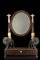 Psiche da tavolo lastronata in mogano con montanti a colonna scanalata decorata con fregi dorati, sorretta da leoni a tutto tondo ebanizzati. Cassetto nella fascia, piedi a zampa ferina. Toscana, secolo XIX (cm 75x94x29) (restauri)