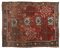 Decoro con alberi della vita stilizzati di colore bianco e alternato verde, in due file verticali, recanti alla base l'antico simbolo del volatile a due teste, estremamente stilizzato. Al centro in successione verticale una fila di piccoli medaglioni ottagonali a fondo bianco. Campo color rosso. Bordura con Gùl policromi su fondo verde. Alla base alcune coppie di personaggi stilizzati, in alto a destra una data in numeri arabi corrispondenti al 1303 dell'Egira di Maometto che equivale all'AD 1885 circa. In alto a sinistra una firma. (cm 173x128) (difetti, rapature, mancanze, vecchi restauri)