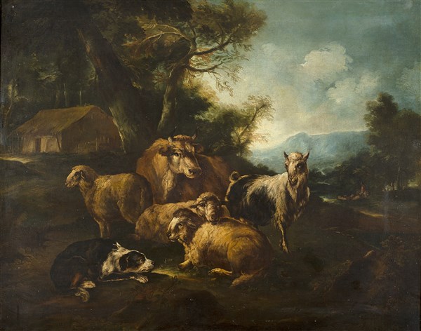 Philipp Peter Roos Paesaggio con armenti e cane da pastore Olio su tela, cm 112,