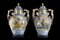 Manifattura del secolo XIX. Coppia di vasi biansati in maiolica decorata in pol