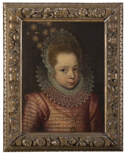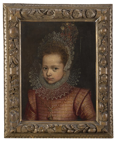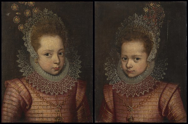 Scuola del nord Europa del secolo XVII Ritratti femminili Coppia di dipinti ad