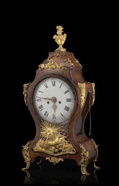 Pendola romana di forma mossa con cassa impiallacciata e guarnita con bronzi dorati