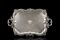 Vassoio biansato in argento con bordi sbalzati a valve di conchiglie e foglie.