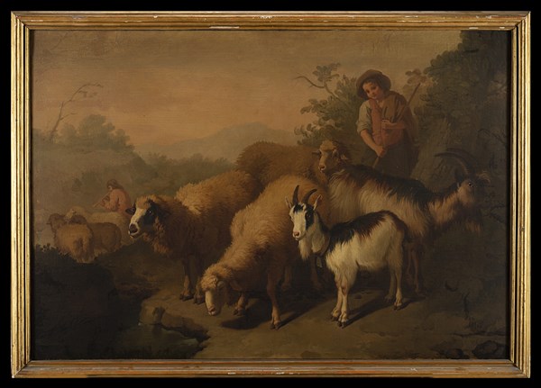 Francesco Londonio Pastorelli con pecore e capre Olio su tela, cm 101,5x147 In c