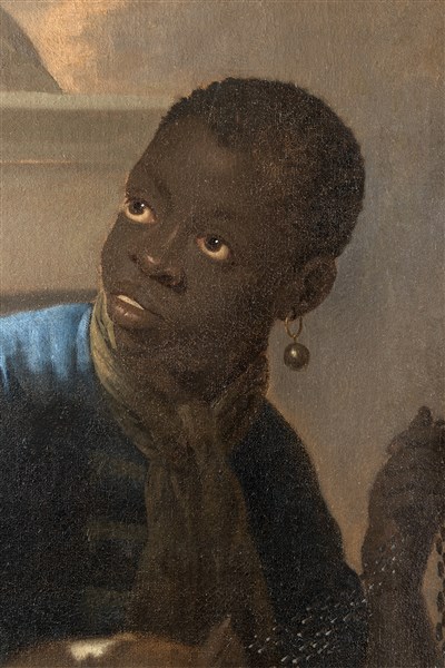 Salomon Adler Ritratto di gentildonna con servo moro e un cane Olio su tela, cm