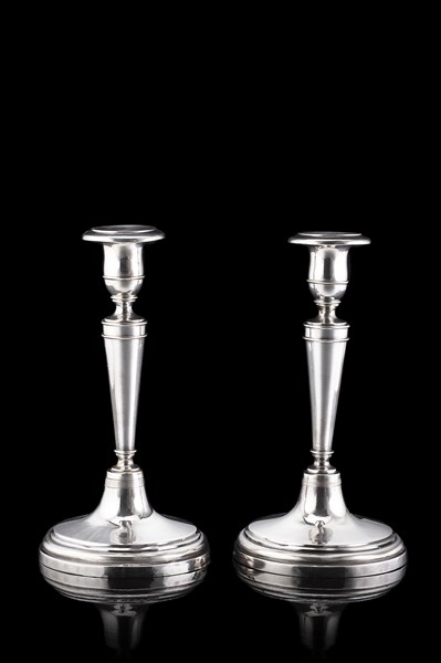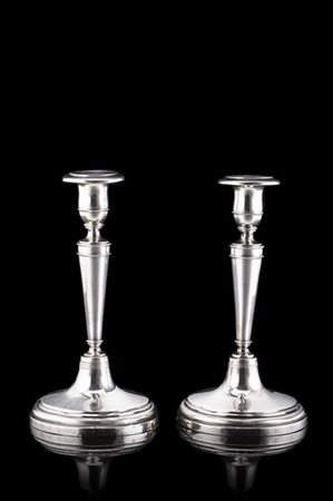 A pair of silver candlesticks. Verona, early 19th century (h. cm 20) (g 550 ca.)