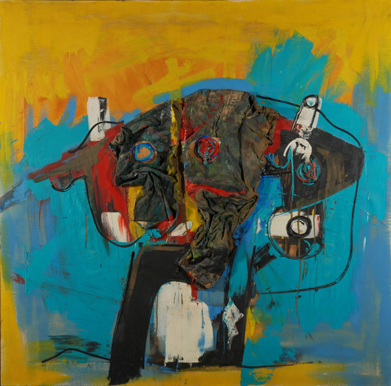 Roberto Crippa (Monza 1921 ‑ Bresso 1972) “Senza titolo” olio, collage e tecnica mista su tela (cm 120x120) iscrizione: “opera originale ed autentica del pittore Roberto Crippa. Pagani, 1986” L’opera è accompagnata da certificato di autenticità su fotografia rilasciato dall’ Archivio Roberto Crippa ‑ Milano a cura della Galleria Pace, n. archivio 953