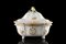 Manifattura del secolo XVIII. Zuppiera con coperchio in maiolica decorata in oc