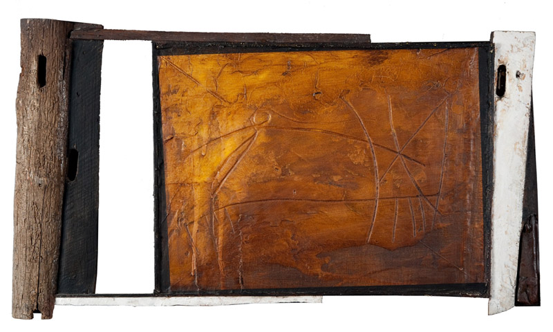Giuseppe Maraniello (Napoli 1945) “Ulisse” 1990 ferro, olio, legno e tecnica mista su tela (cm 34x62,5) Firmato, titolato e datato 1990 al retro