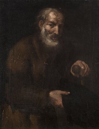 Scuola lombarda del secolo XVIII Vecchio mendicante Olio su tela, cm 47x36 In