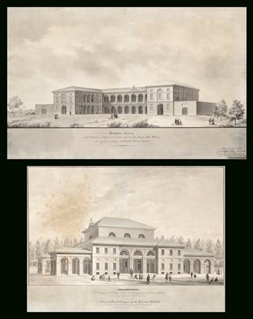 Pair of drawings in pen and black ink and watercolor over traces of black chalk, 59x93 cm. circa and 50x68 cm. circa