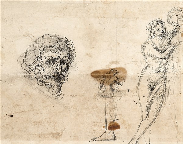Cerchia di Giovanni Carnovali detto il "Piccio" Studi di figure Penna, inchios